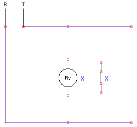 - R상과 S상에 전원이 투입되면 = 릴레이 코일 X가 여자되어 b접점 X가 닫힌다.