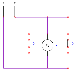 - 접점 증폭회로라고도 하며, 릴레이 X에 전류가 흐르면 동시에 몇 개의 ON 및 OFF 회로가 형성되는 것이다. 특별히 a 접점만 이용하는 것과 b 접점만 이용하는 것도 있다.