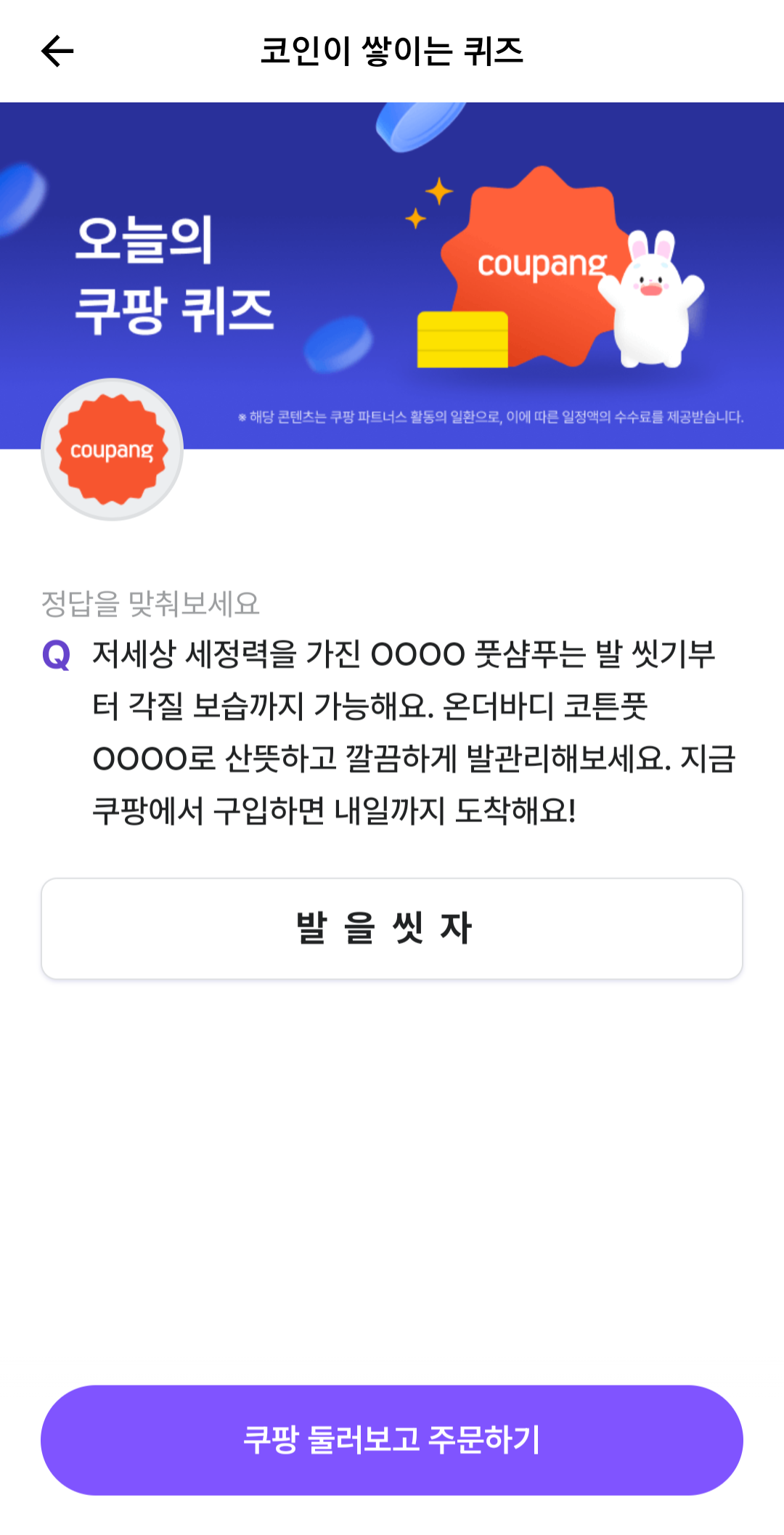 ■ 비트머니 오늘의 쿠팡 퀴즈 정답