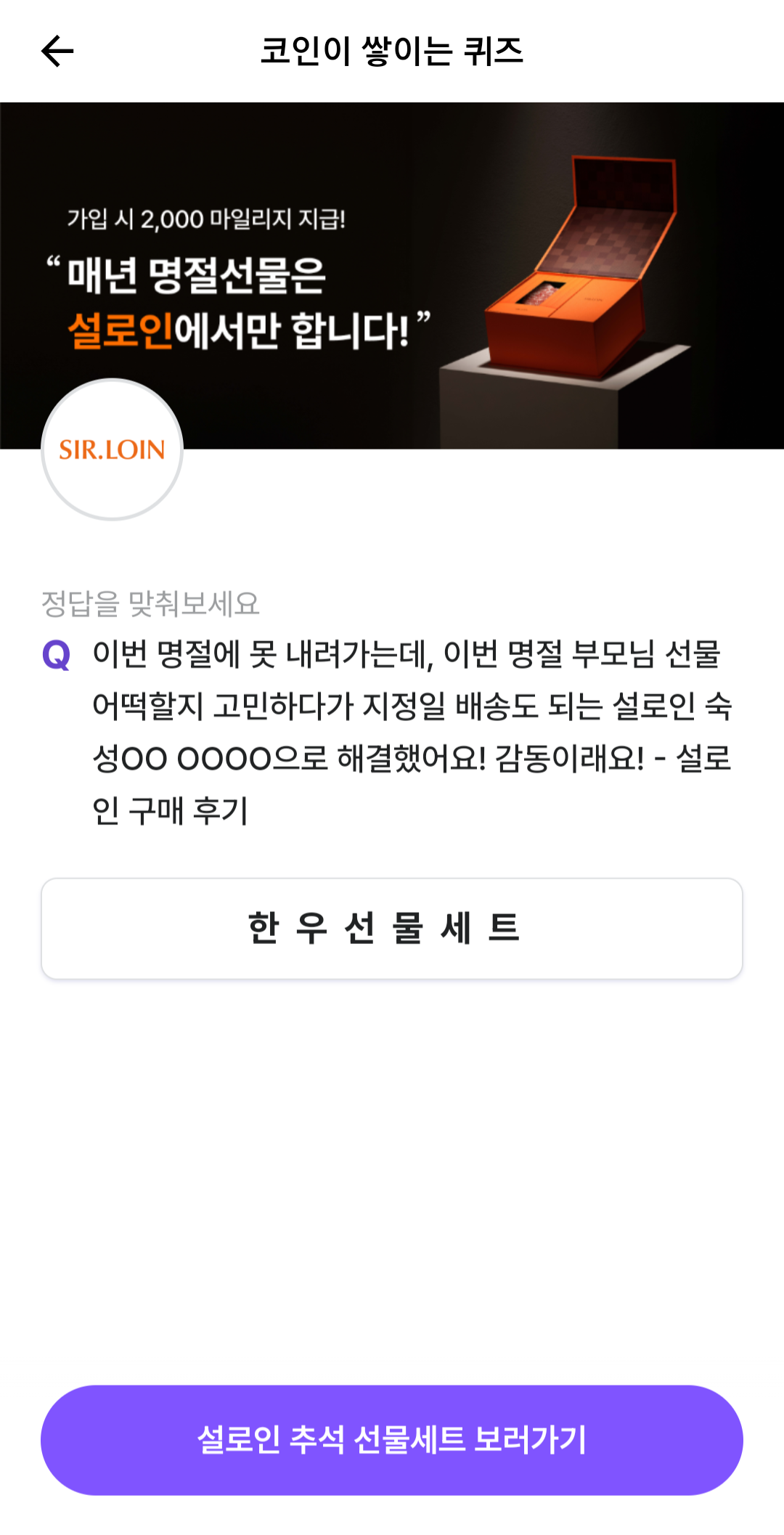 정답 👉 한우선물세트