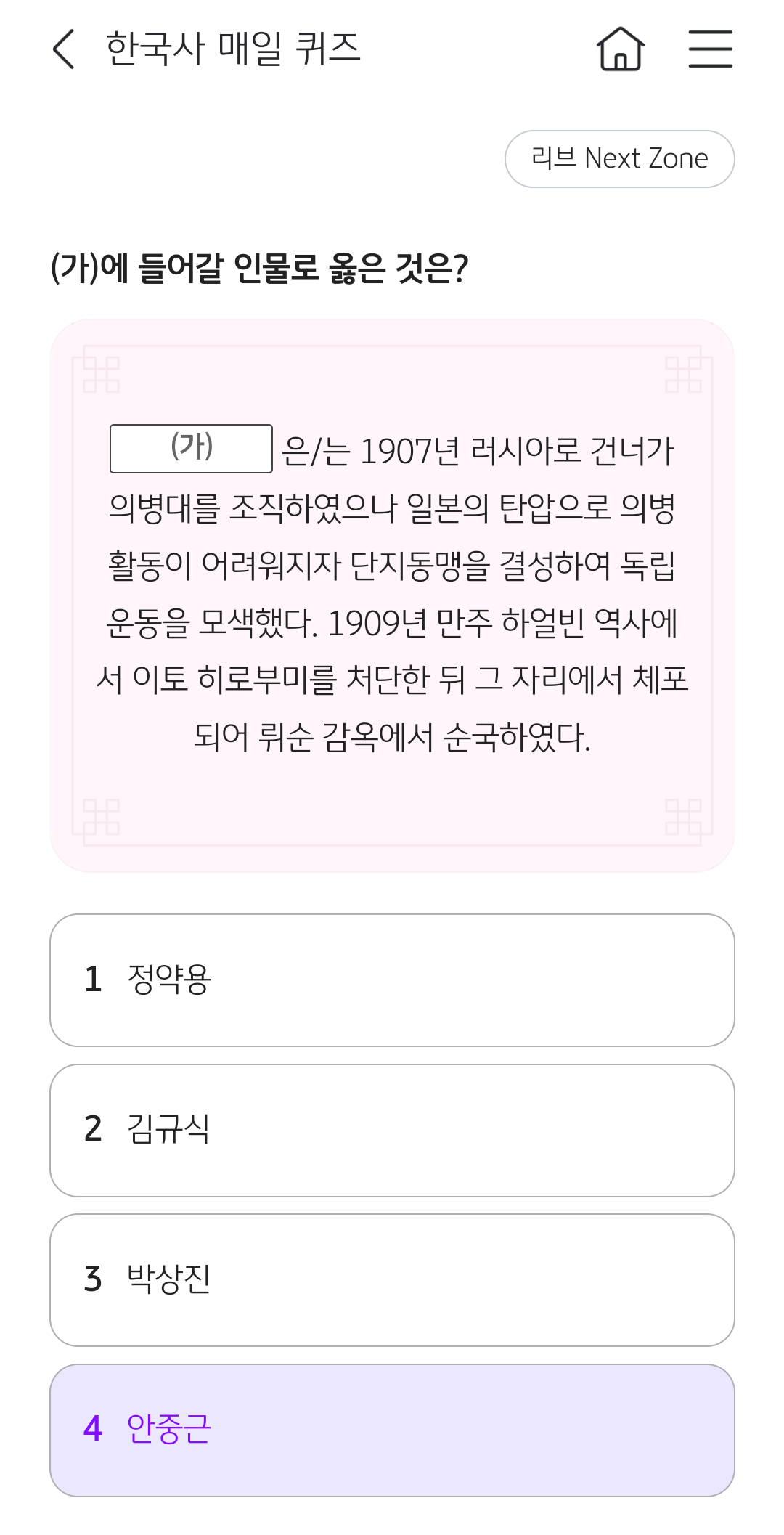 정답 : 4 , 안중근