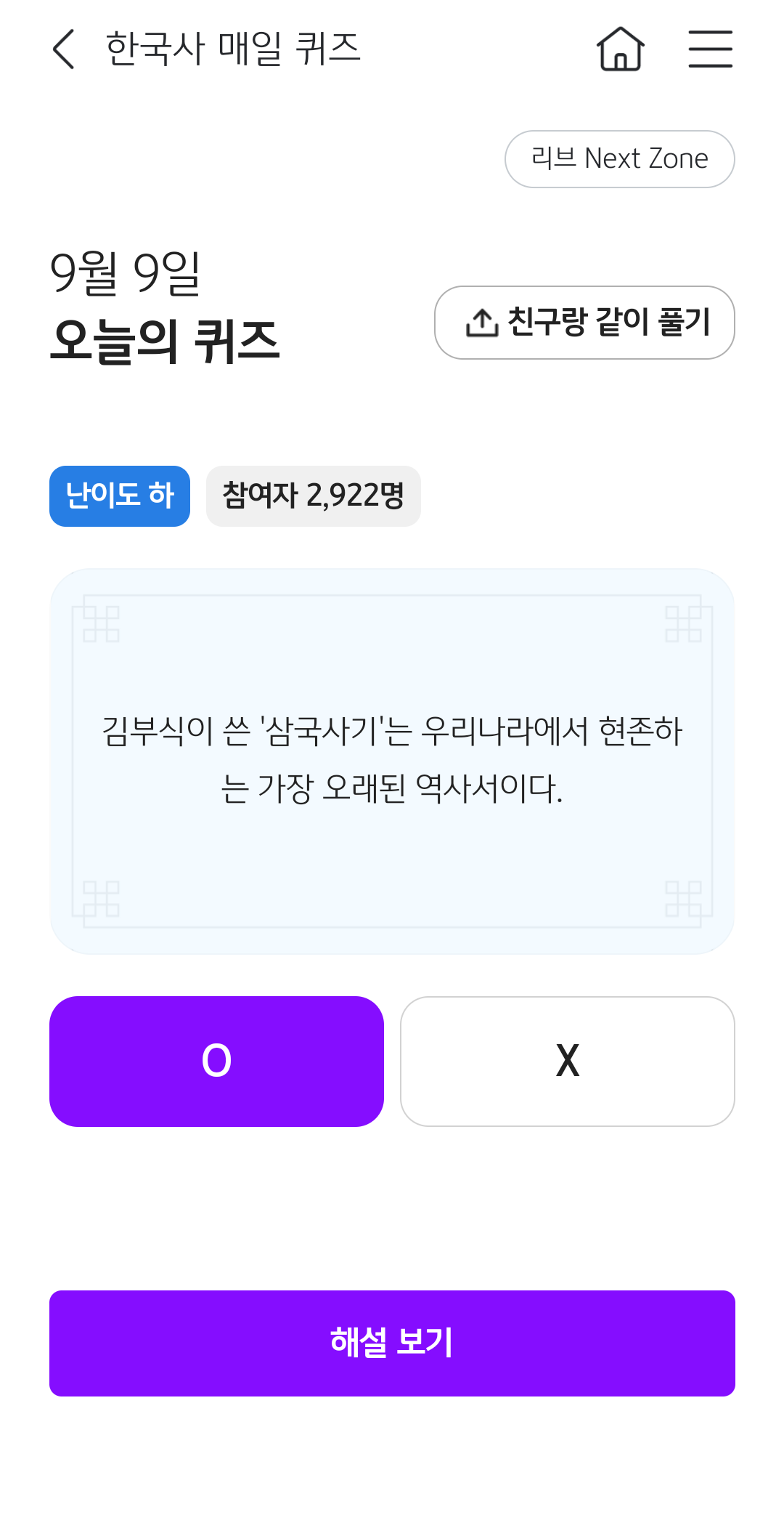 KB 스타뱅킹 9월 9일 한국사 퀴즈 정답
