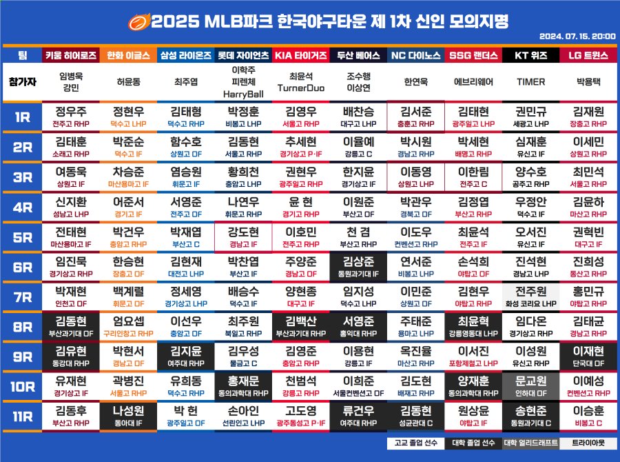 025 KBO 신인 드래프트 결과를 한눈에! 각 구단별 지명 선수, 주목할 신인, 드래프트 일정 등 모든 정보를 총망라한 완벽 가이드.