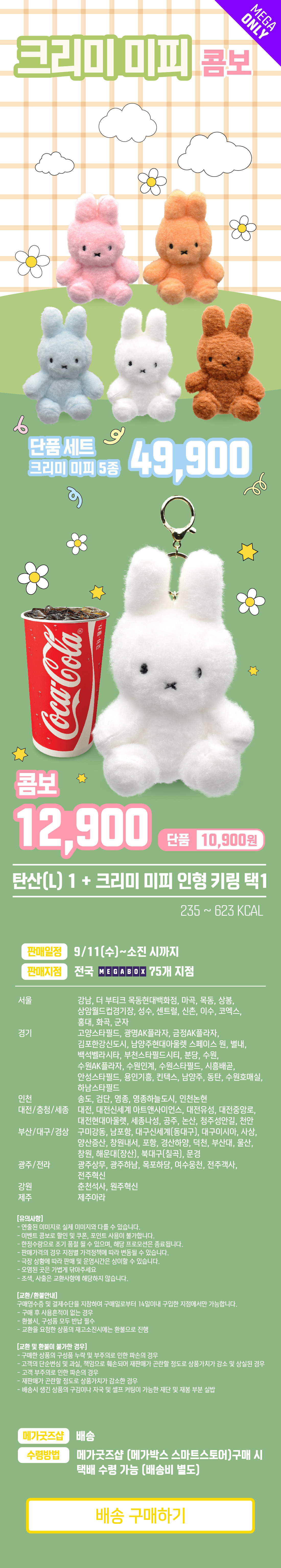메가박스 미피 콤보는 2024년 9월 11일부터 10월 31일까지 한정 판매됩니다. 이 기간 동안만 구매할 수 있는 특별한 기회이니, 관심 있는 분들은 서두르셔야 합니다!