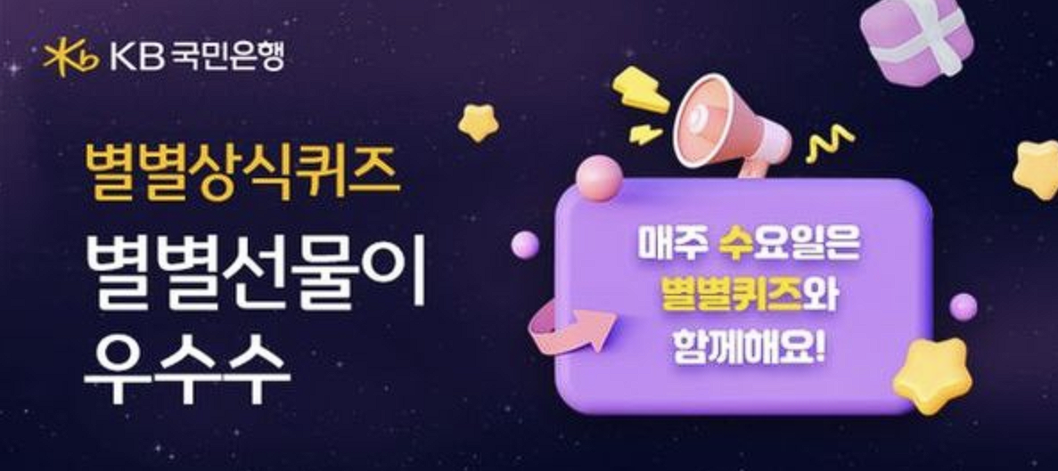 KB스타뱅킹 별별퀴즈는 KB금융그룹의 핵심 플랫폼 앱인 KB스타뱅킹에서 제공하는 퀴즈 서비스입니다. 매주 수요일마다 새로운 퀴즈가 출제되며, 경제, 금융, 상식, 부동산, 넌센스 등 다양한 분야의 문제가 출제됩니다.