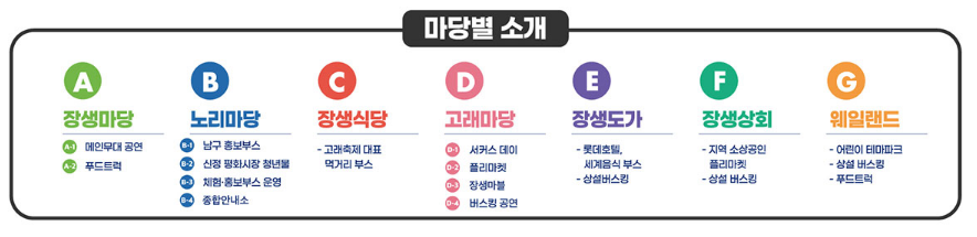 - 장생식당: 다양한 음식 판매 및 대형 스크린으로 공연 생중계