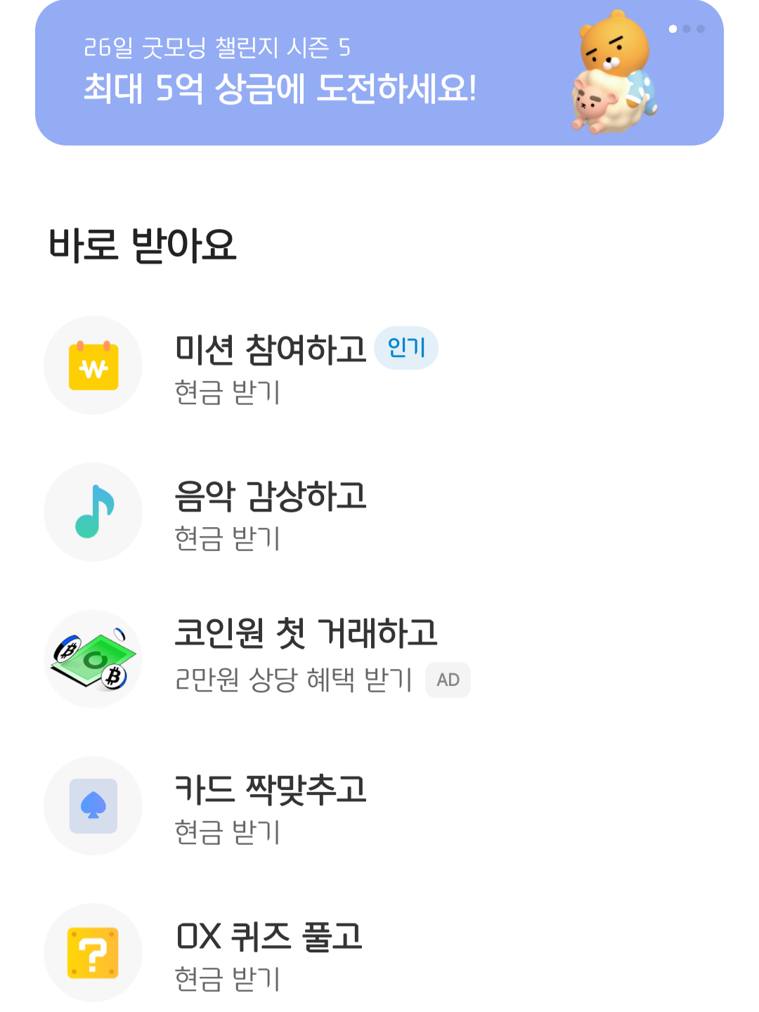 그렇다면 이 보너스 용돈은 어떻게 받을 수 있을까요? 카카오뱅크 앱에서 '매일 용돈 받기' 이벤트 페이지로 이동하면 보너스 용돈 받기 버튼이 있습니다. 이 버튼을 클릭하면 간단한 미션을 수행하거나 퀴즈에 참여할 수 있는데요, 이를 성공적으로 완료하면 보너스 용돈을 지급받을 수 있습니다.