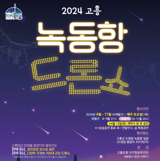 2024 고흥 드론 쇼에 대한 프로모션 포스터로, 축제의 분위기를 잘 전달하고 있어요.