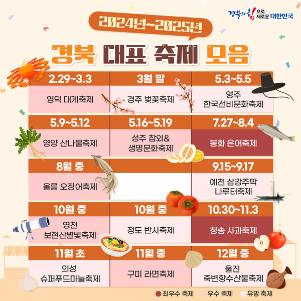 2024년부터 2025년까지의 경북 축제 일정이 정리된 이미지입니다.