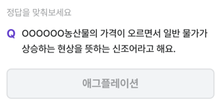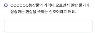 1월 6일 출제된 비트버니퀴즈는 "0000OO농산물의 가격이 오르면서 일반 물가가 상승하는 현상을 뜻하는 신조어라고 해요." 다