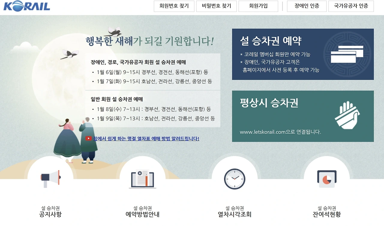 - KORAIL 홈페이지 접속 : KORAIL 공식 홈페이지로 이동해 주세요.