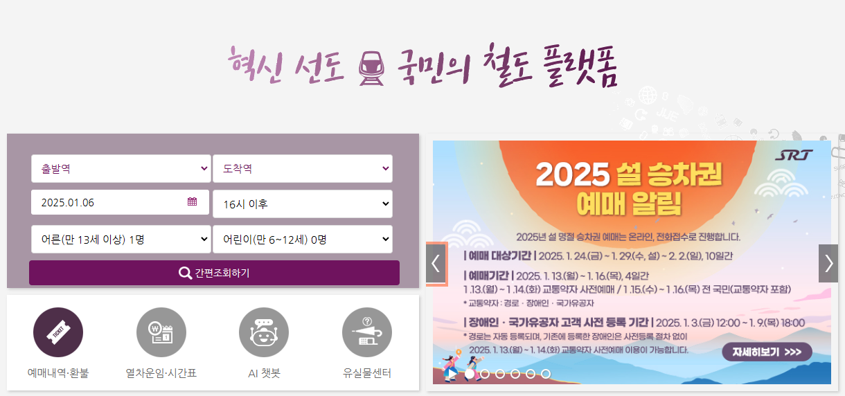 2025년 설날이 오는 만큼, 많은 분들이 고향 방문이나 여행 계획을 세우고 계실 거예요. SRT는 빠르고 편리한 이동 수단으로 많은 사랑을 받고 있는데요. 특히 명절에는 수요가 급증하므로 미리 예매를 하는 것이 중요합니다.
