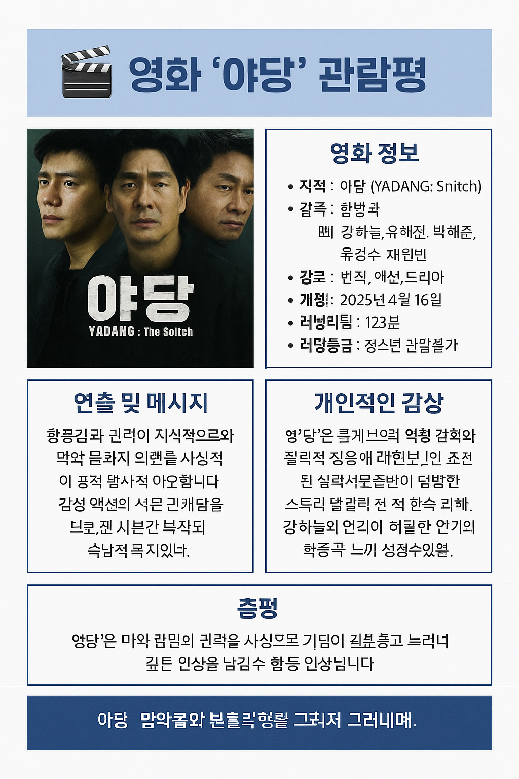 - ์ ๋ชฉ: ์ผ๋น (YADANG: The Snitch)