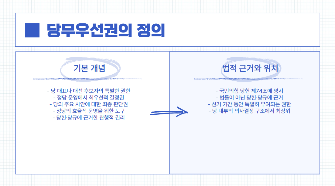 "정당 안에서 누가 진짜 결정권자일까?" 당무우선권 한 줄 개념으로 정리해드립니다.