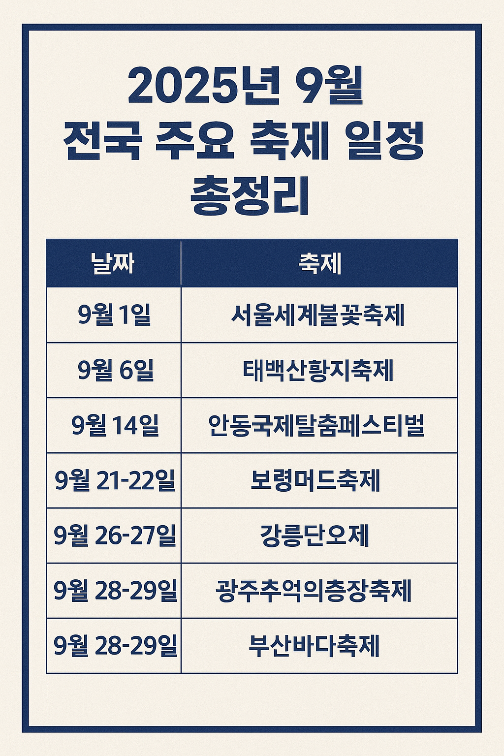2025년 9월 전국 주요 축제 일정 총정리
