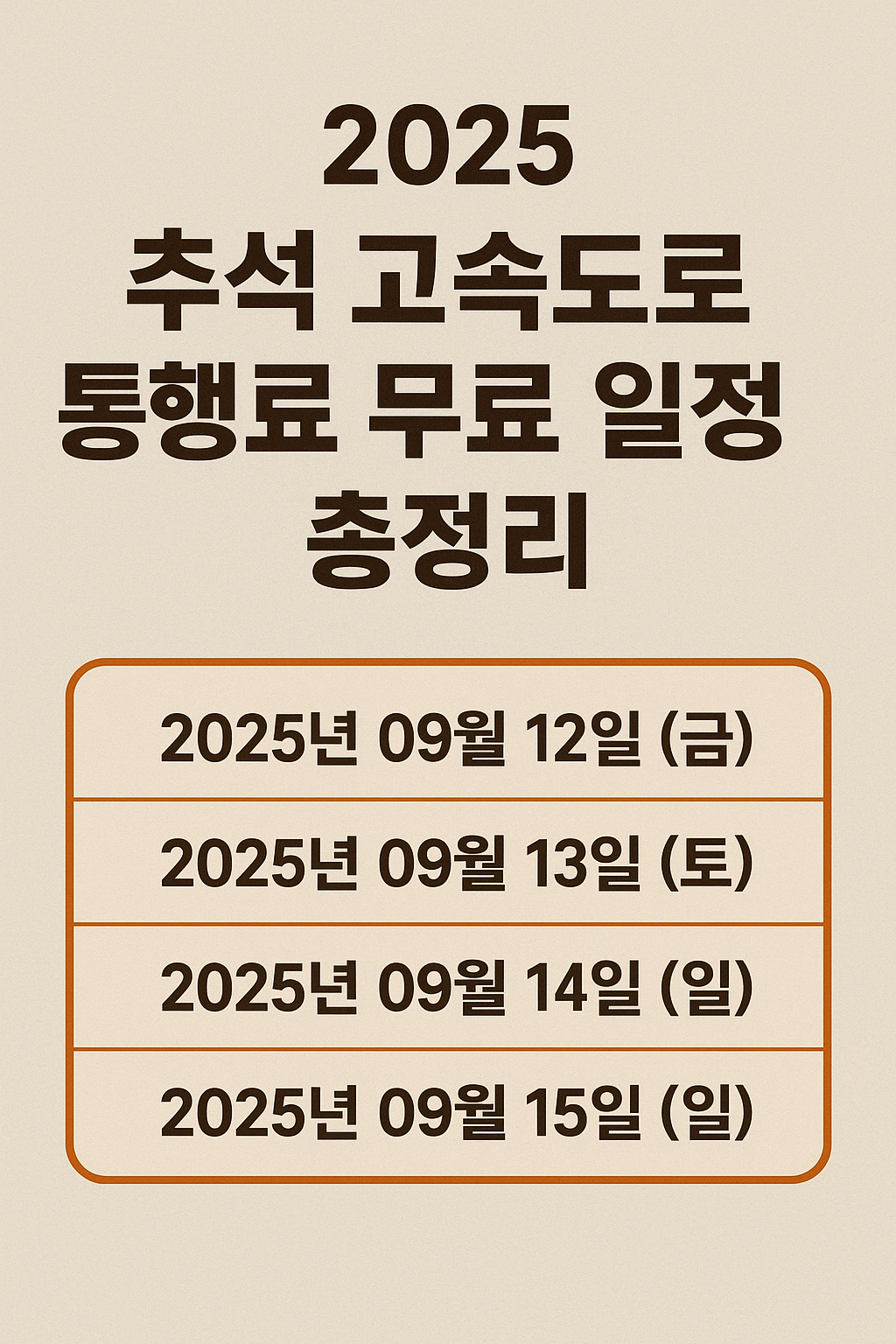 안녕하세요 😊 올 추석은 유난히 기대가 큽니다. 오랜만에 가족들을 만나는 설렘도 있지만, 고속도로 통행료 무료 소식을 접하고 나니 마음이 한결 가벼워지더라고요. 작년에는 차가 막히는 것만 해도 힘들었는데, 톨게이트에서 요금까지 내야 했던 기억이 아직도 생생합니다. 이번에는 그런 부담이 줄어든다니, 저처럼 기뻐하는 분들 많으실 거예요. 그래서 오늘은 2025 추석 고속도로 통행료 무료 일정과 유용한 팁을 총정리해 드리려고 합니다.