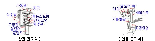 - 코일에 단락 전류가 흐르는 경우 대단히 큰 자력이 발생하므로 바이메탈이 휘어지기전에 가동판을 끌어당겨 트립을 하게 한다.
