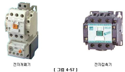 전자 개폐기, 전자 접촉기, 정역 전자개페기, Y-ㅿ 시동기, 보조계전기등이 있으며, 케이스가 있는 것과 없는 것 등이 있다.